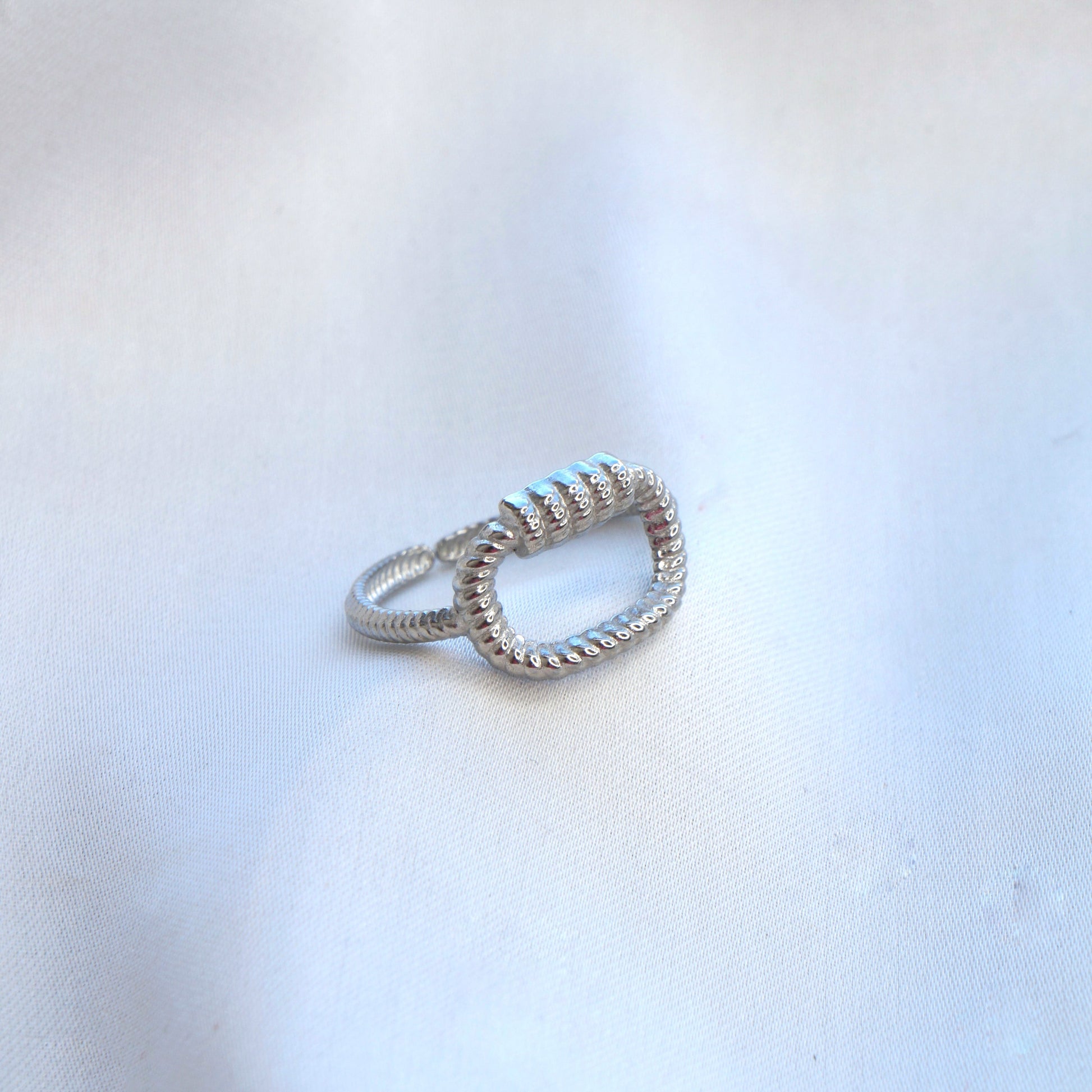 La Bague Syrinx est une pièce de joaillerie en acier inoxydable argenté, ornée d'un motif délicat inspiré par le mousqueton. Avec sa conception sophistiquée et son matériau de qualité, cette bague est un choix élégant pour compléter n'importe quelle tenue. Offrez-vous ce bijou exclusif pour ajouter une touche de luxe à votre style.