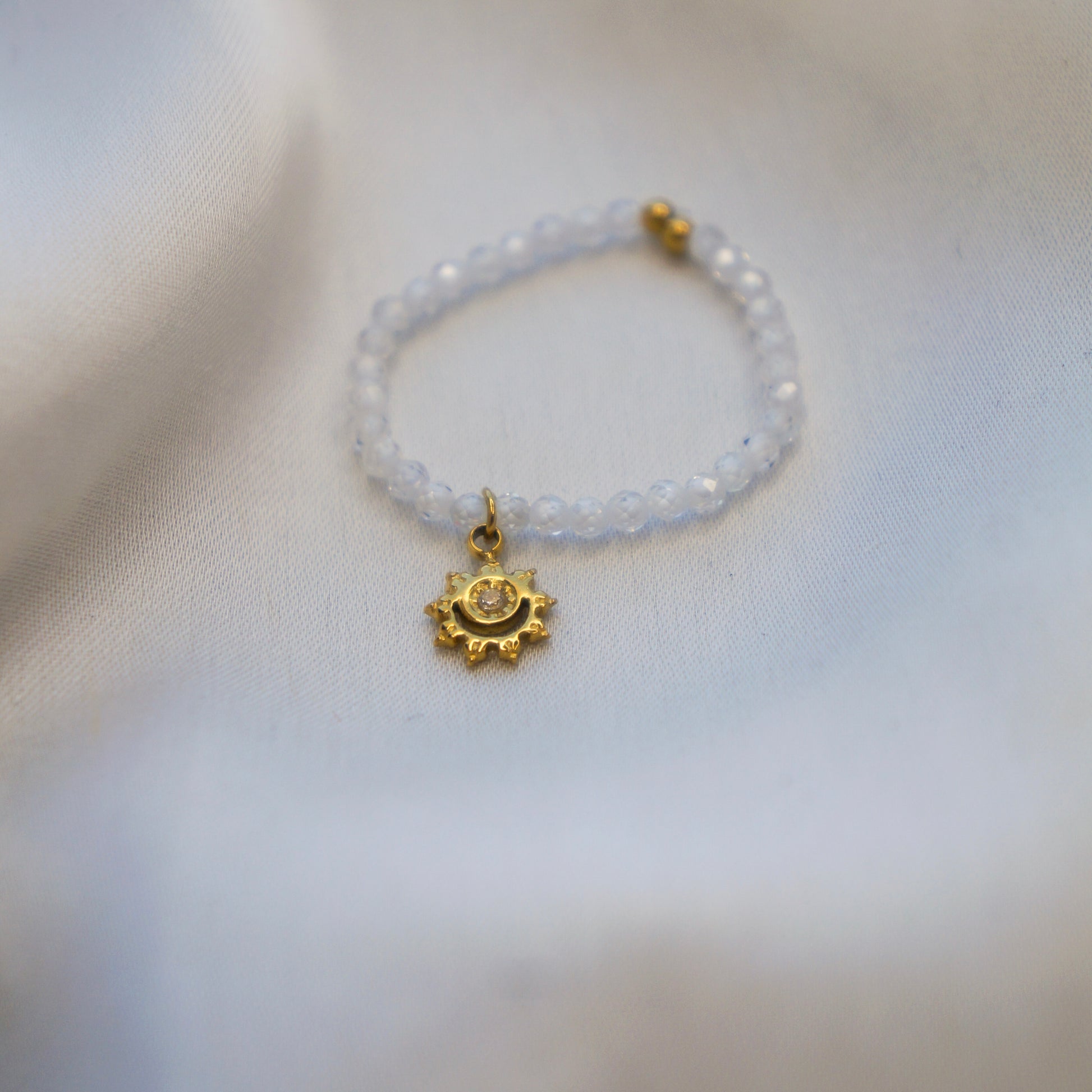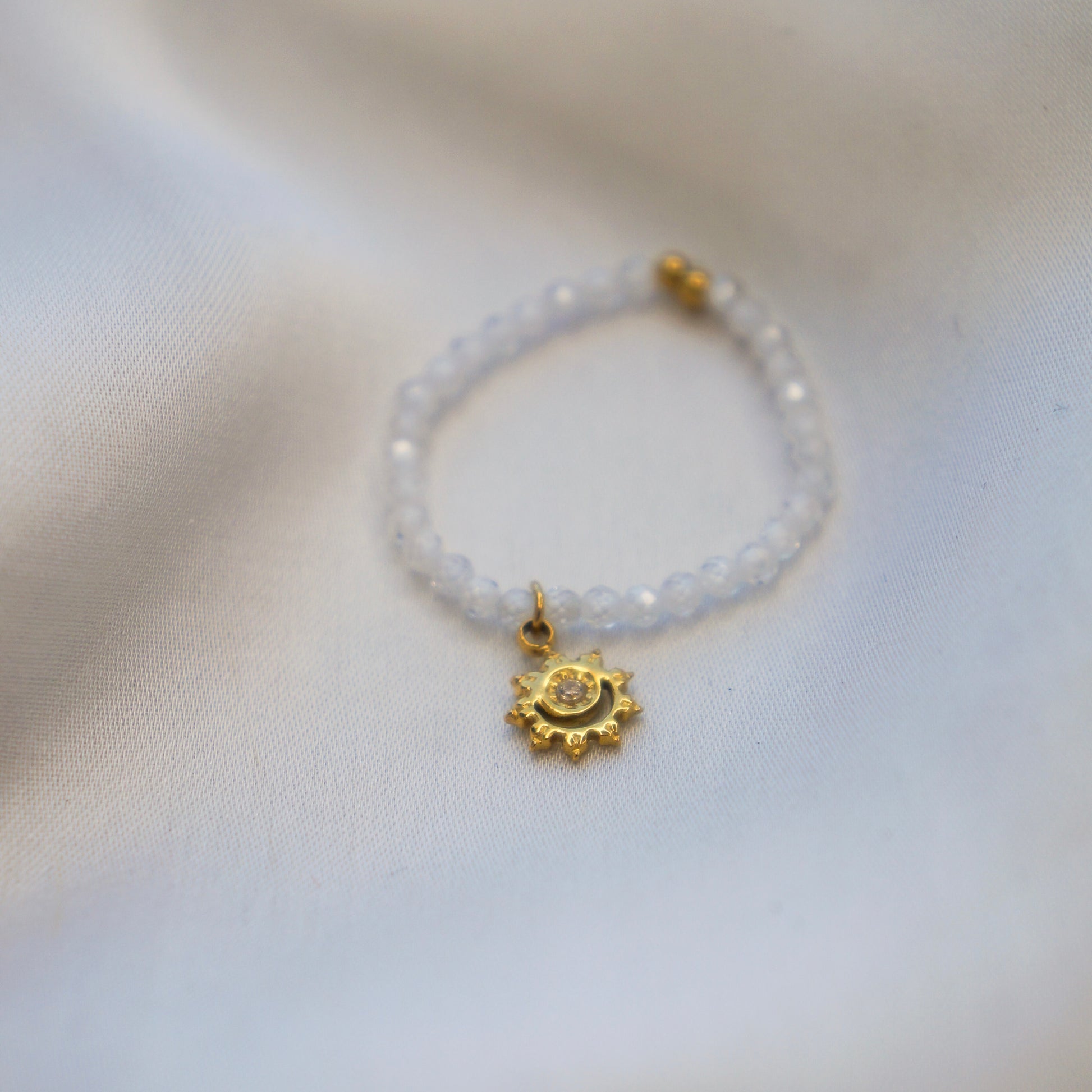 Cette bague en élastique Ooki est la touche finale parfaite pour compléter votre tenue. Fabriquée en acier inoxydable doré, elle est ornée de perles blanches et d'un pendentif en forme de lune doré. Sa qualité supérieure et son design élégant en font un accessoire de mode incontournable pour les amateurs de bijoux de luxe.
