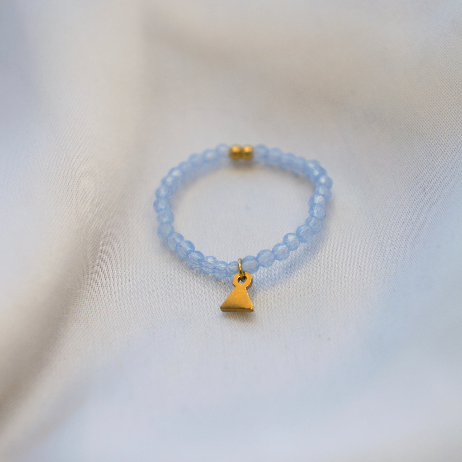 Cette bague en élastique Gawa est la touche finale parfaite pour compléter votre tenue. Fabriquée en acier inoxydable doré, elle est ornée de perles bleu pastel et d'un pendentif en forme de trisangle doré. Sa qualité supérieure et son design élégant en font un accessoire de mode incontournable pour les amateurs de bijoux de luxe.
