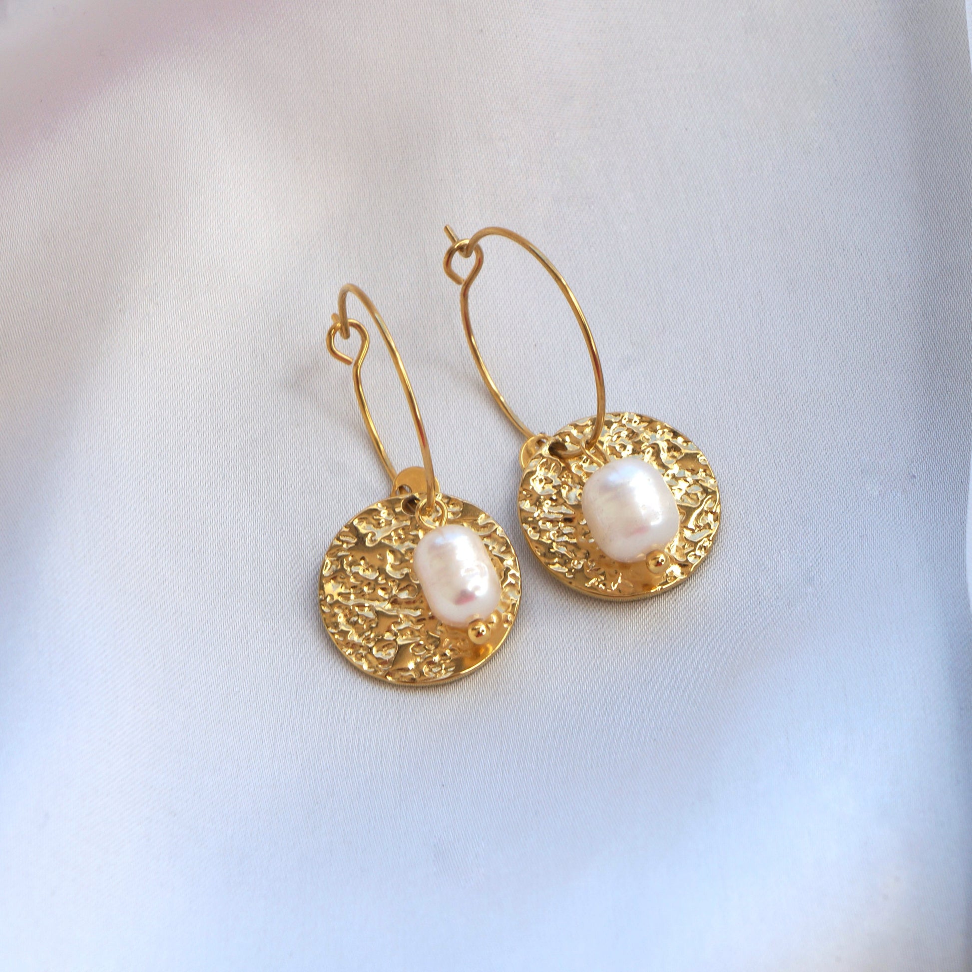 Offrez-vous un style élégant avec les Boucles d'Oreilles Mérope en acier inoxydable doré. Le motif martelé et la perle d'eau douce apportent une touche sophistiquée et exclusive à ces boucles d'oreilles. Ajoutez une touche de luxe à toutes vos tenues avec cet accessoire de qualité supérieure.