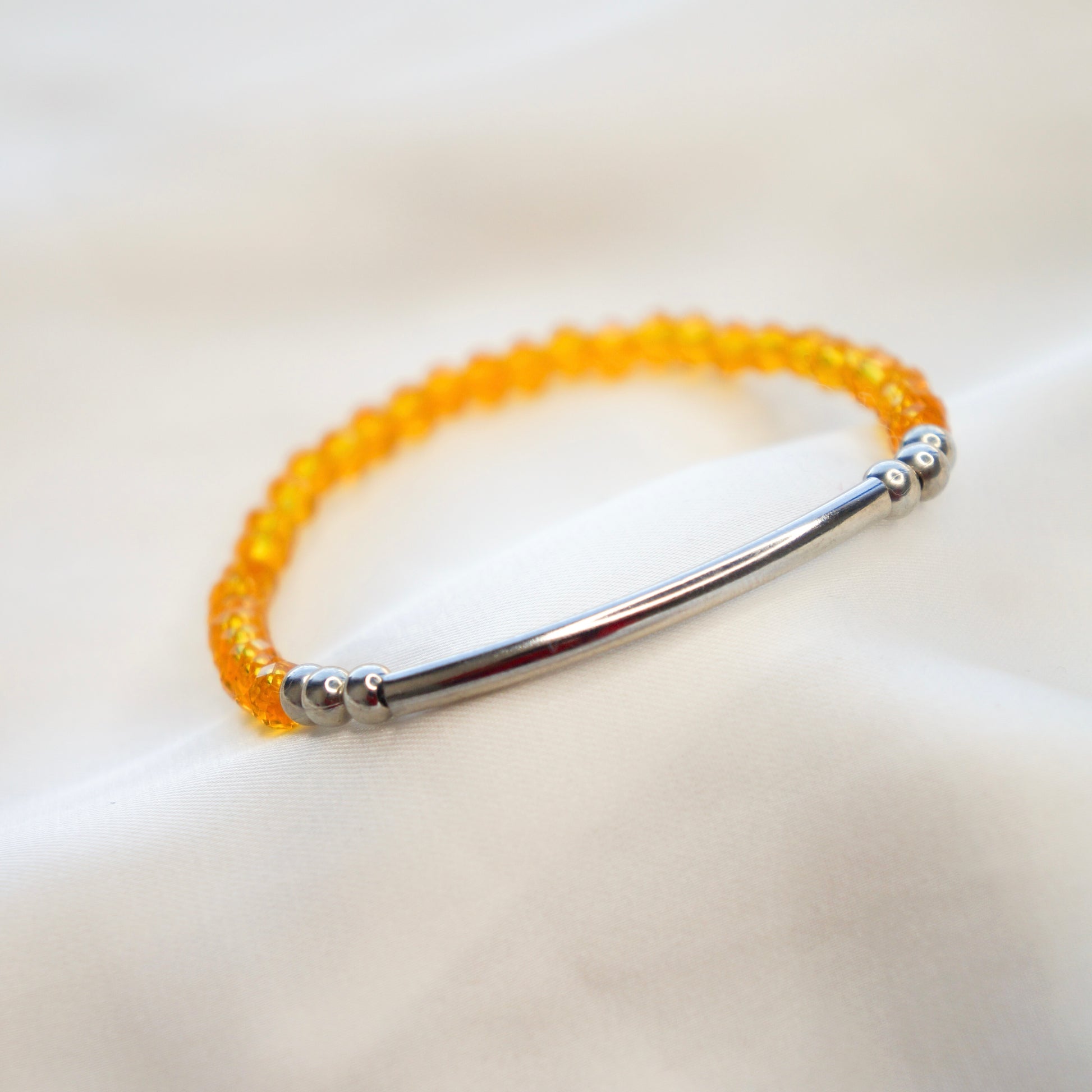 Découvrez le Bracelet Hera, un bijou de luxe en acier inoxydable argenté. Son élasticité assure un confort optimal tandis que les perles jaunes ajoutent une touche de couleur et de sophistication. Laissez-vous séduire par sa qualité et son élégance exclusive.