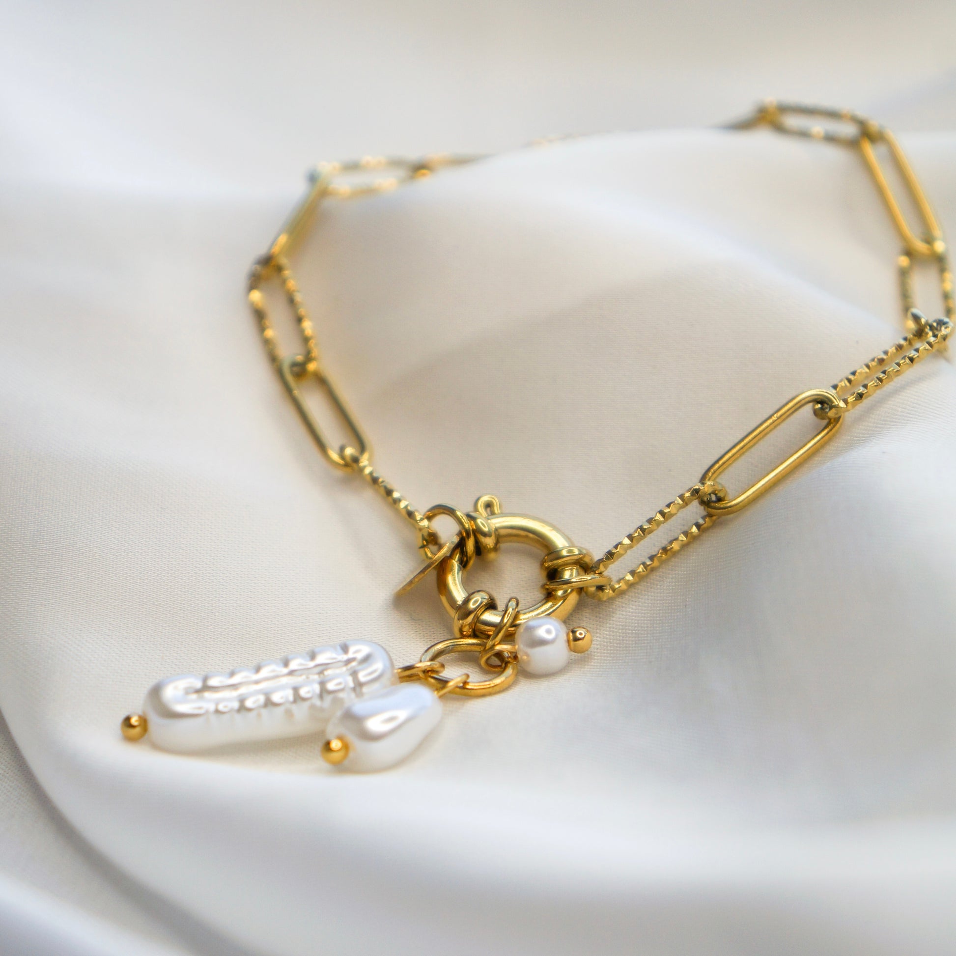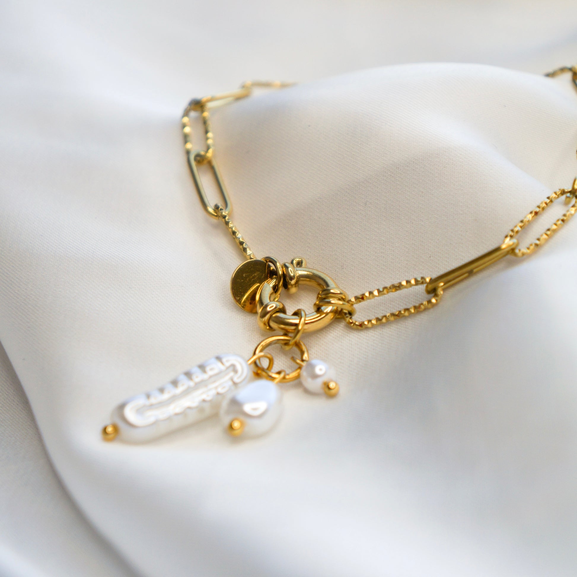 Découvrez le luxe absolu avec le bracelet Inaya. Fabriqué en acier inoxydable doré, ce bijou est doté d'une attache facile pour un port confortable. Les perles d'eau douce apportent une touche raffinée et élégante à cette pièce incontournable de votre garde-robe. Laissez-vous séduire par l'art et la sophistication de ce bracelet exclusif.