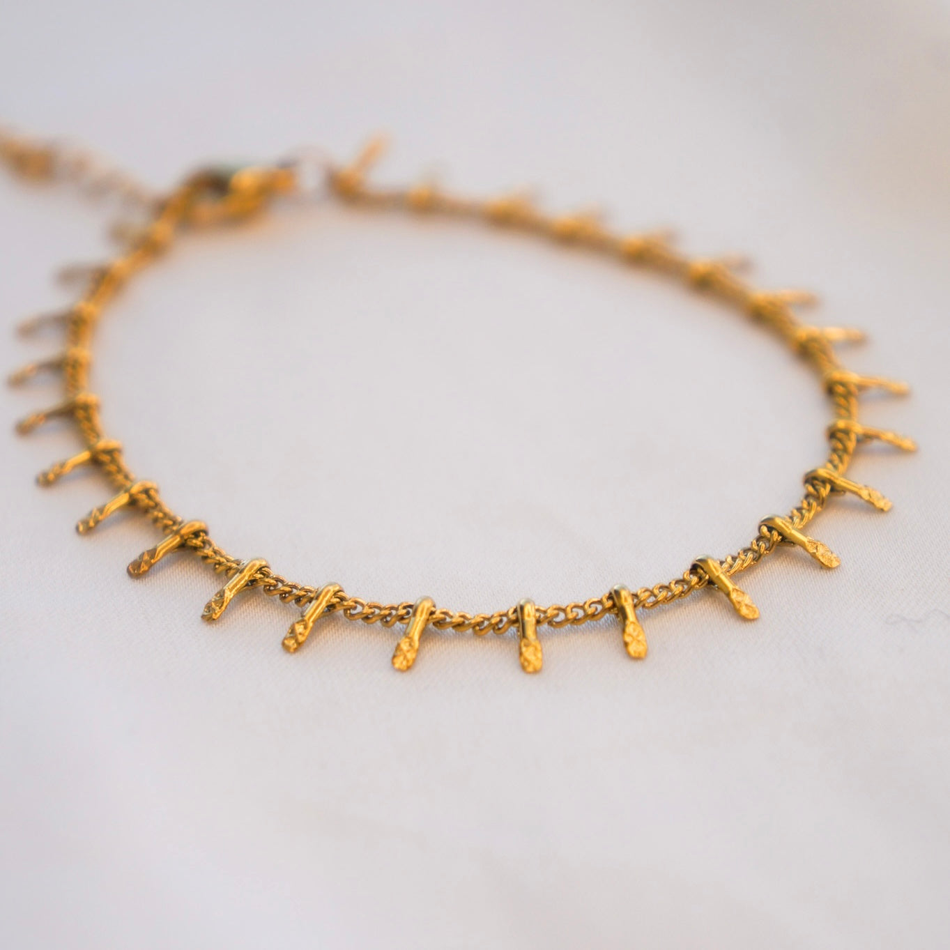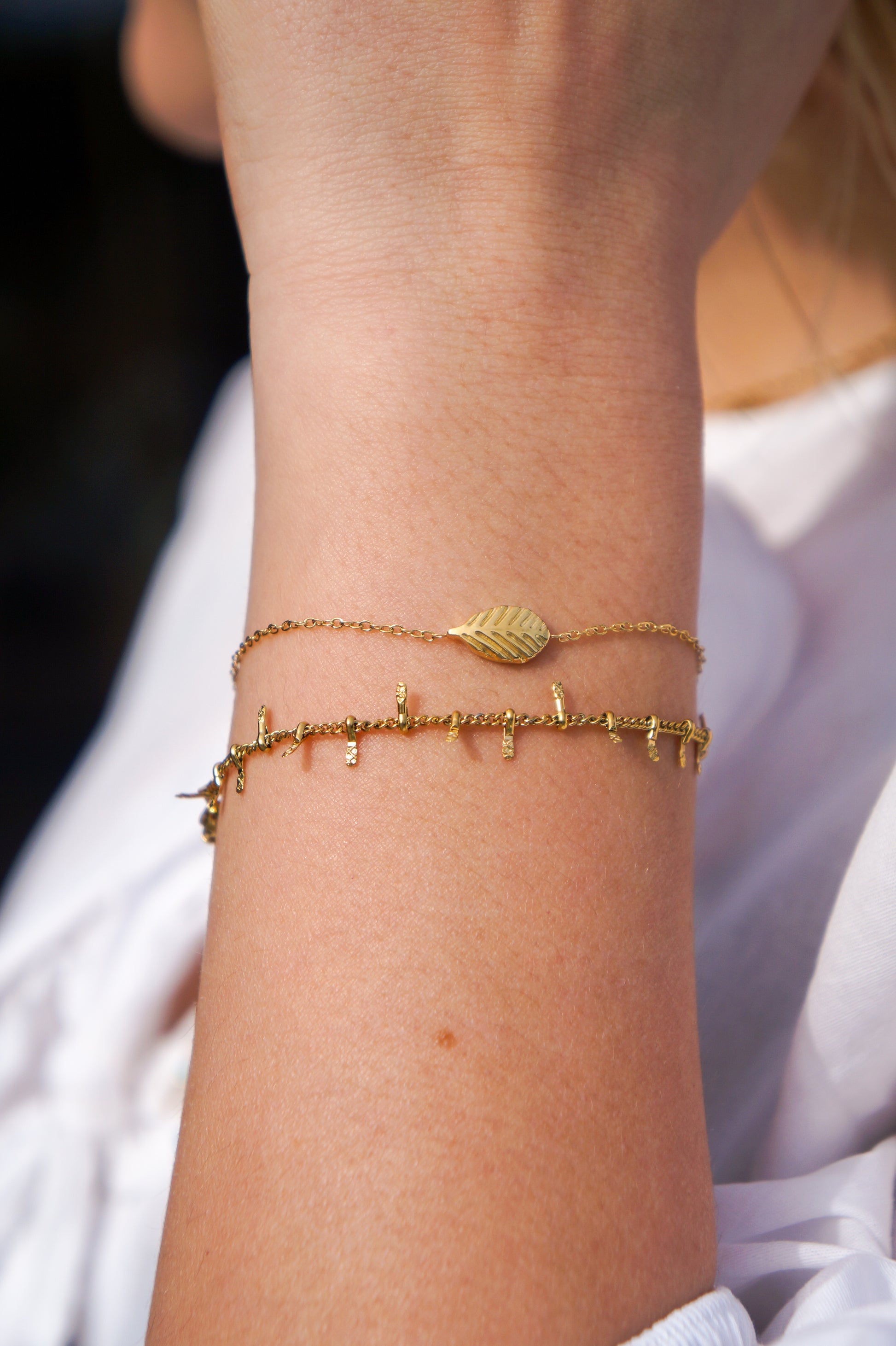 Montrez votre style avec le Bracelet Manon en acier inoxydable doré. Doté d'un design élégant avec des picots dorés tout autour, ce bracelet ajoute une touche de sophistication à votre look. Fabriqué avec des matériaux de haute qualité, il est à la fois robuste et raffiné. Parfait pour toutes les occasions, ce bracelet est un must-have pour toute collection de bijoux de luxe.