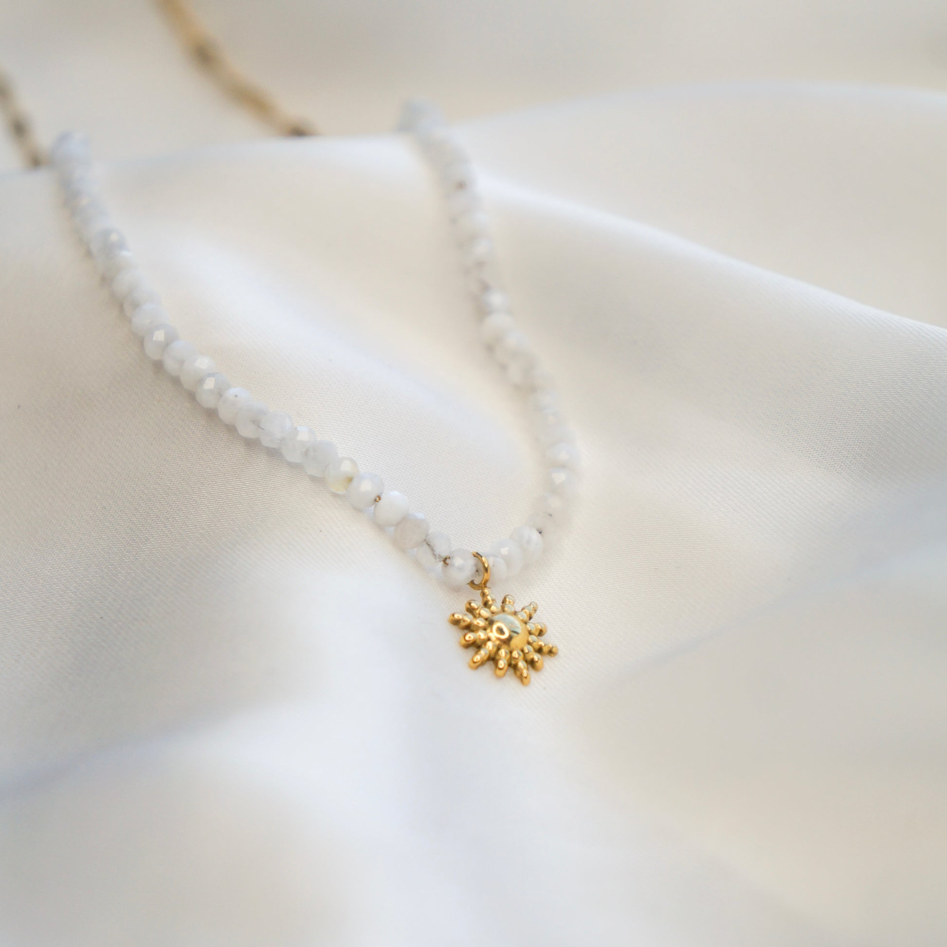 Découvrez le Collier Hina, un bijou exclusif en acier inoxydable dorée. Avec son motif de perles blanches et son pendentif soleil, ce collier apporte une touche de sophistication à votre look. Fabriqué avec des matériaux de qualité, il est à la fois élégant et durable. Faites-vous remarquer avec le Collier Hina.