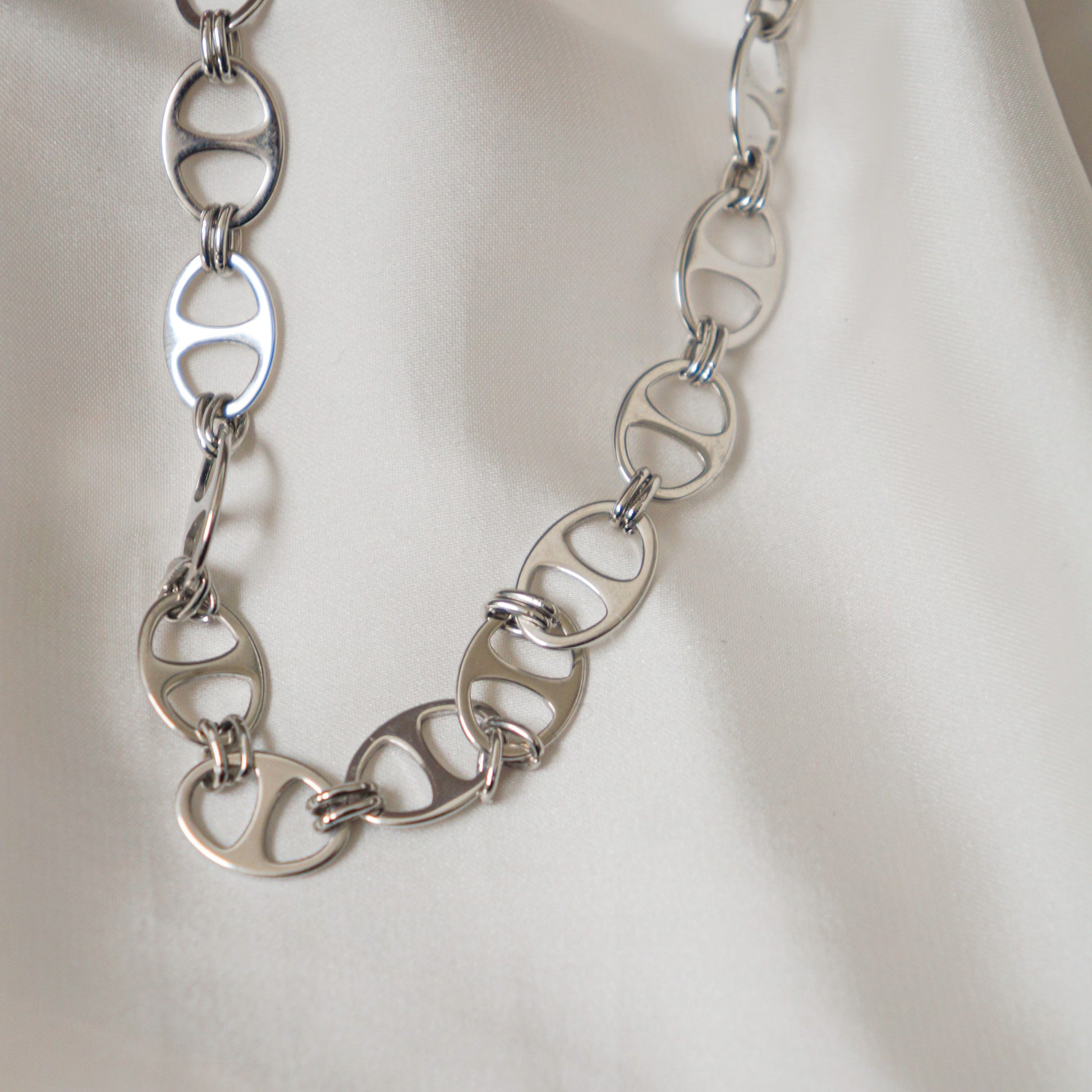 Fabriqué à partir d'acier inoxydable de qualité, ce collier est non seulement résistant à l'usure et durable, mais il a également une finition argentée brillante qui donne une apparence luxueuse et sophistiquée. Le collier est parfaitement assemblé pour un look équilibré et harmonieux.