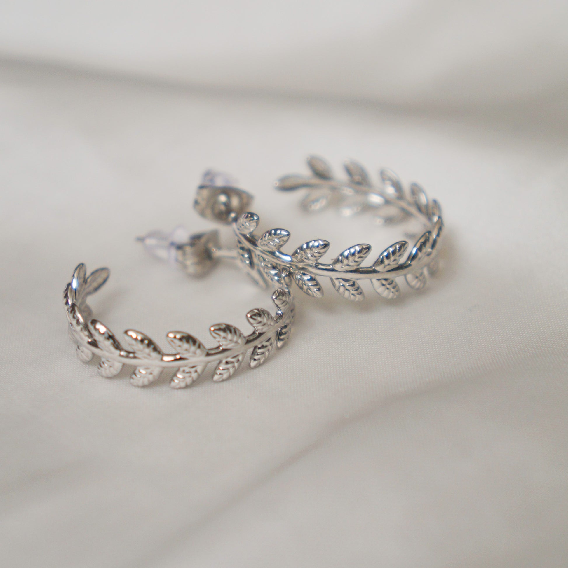 Les Boucles d’Oreilles Olivia sont confectionnées en acier inoxydable argenté et disposent d'un design élégant de feuilles de Laurier. Intemporelles, elles sont idéales pour ajouter une touche luxueuse à votre look. Ces créoles de haute qualité sont à la fois chic et robustes - idéales pour compléter avec style n'importe quelle tenue!