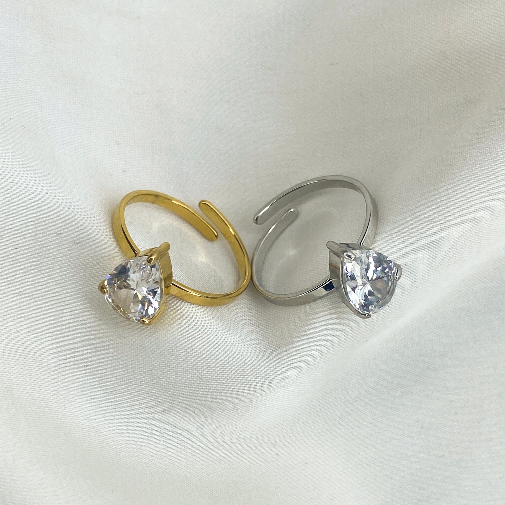 Donnez votre parole avec élégance grâce à la bague de promesse Danae en acier inoxydable. Avec son gros strass style diamant en forme de goutte, cette bague symbolise votre engagement et promet de briller à votre doigt. Faites de cet anneau un symbole exclusif de votre amour.