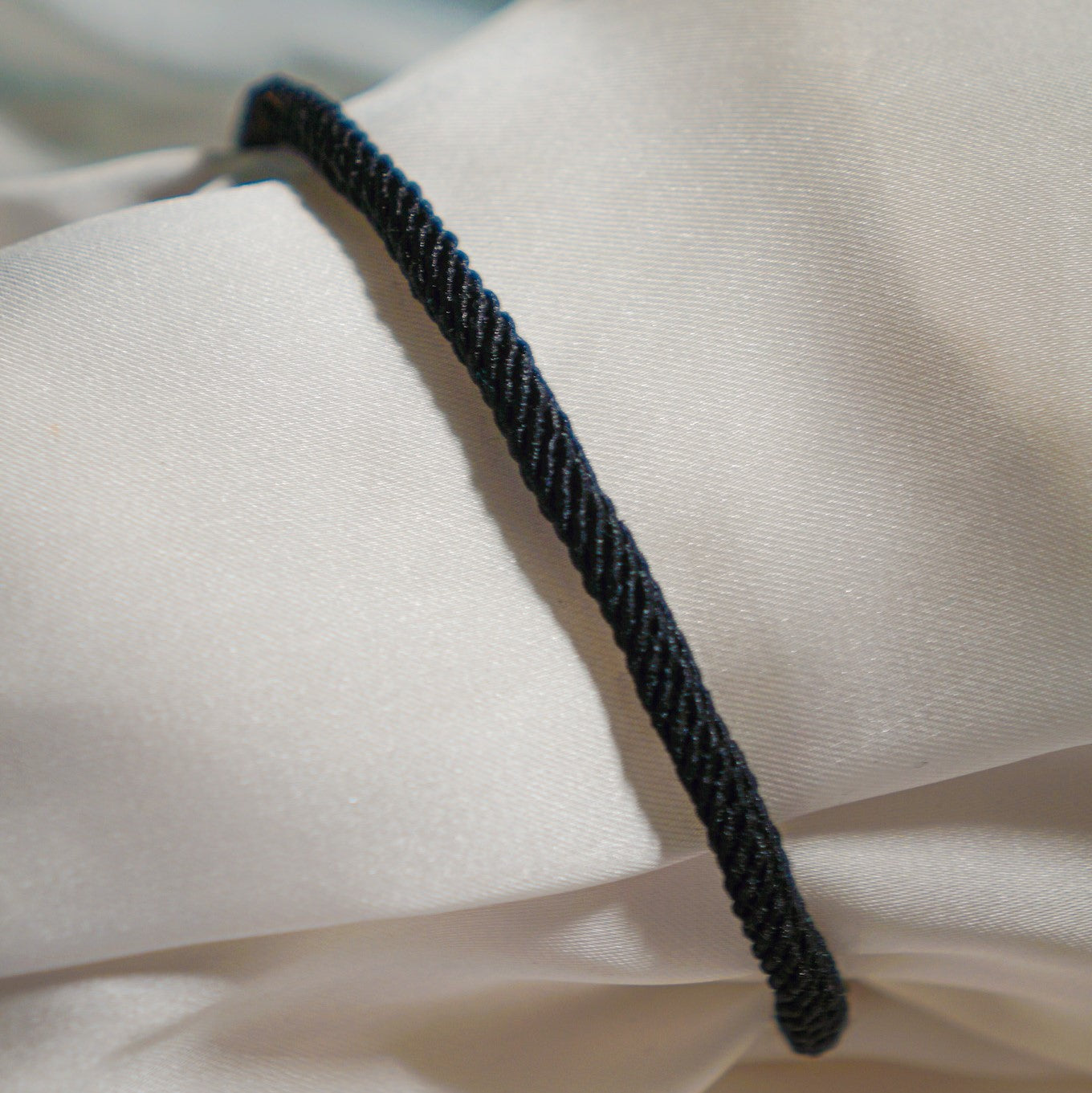 La cordelette noire est tressée de manière experte, créant une texture légèrement rugueuse et offrant une sensation agréable au toucher. Sa couleur noire lui confère une allure sophistiquée et polyvalente, lui permettant de s'adapter à différents styles et occasions.