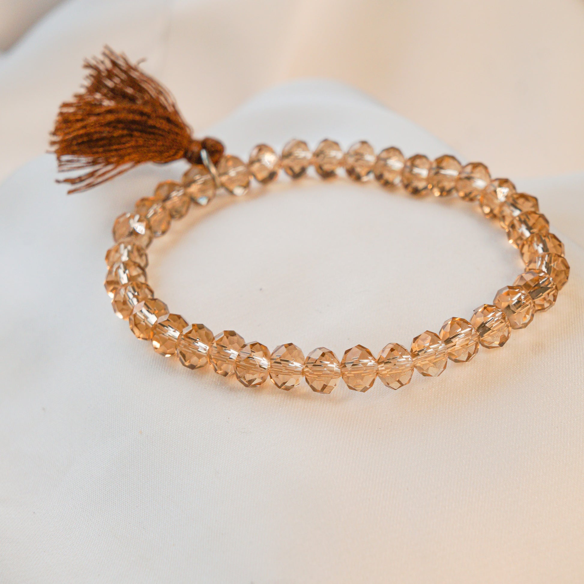 Le bracelet élastique avec des perles marrons et des pompons assortis est un accessoire bohème et tendance. Ce bracelet est conçu avec une structure élastique, ce qui le rend facile à enfiler et à retirer, offrant un ajustement confortable à votre poignet.