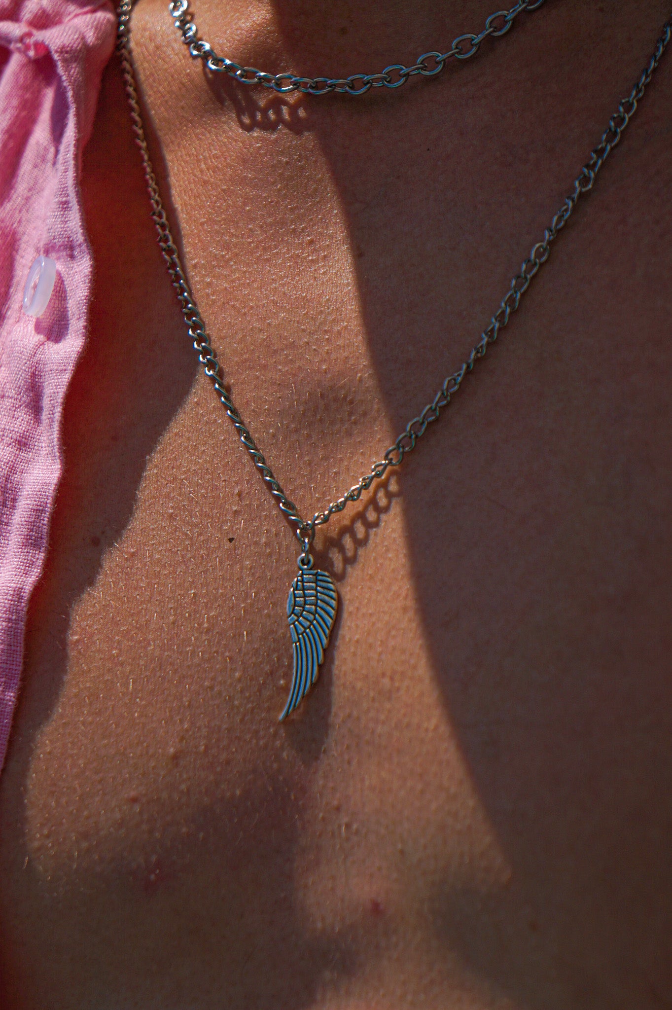 Découvrez cette impressionnante chaîne pour homme, ornée d'un pendentif en forme d'aile d'ange en acier inoxydable argenté. Cette pièce remarquable allie à la fois style, symbolisme et élégance.