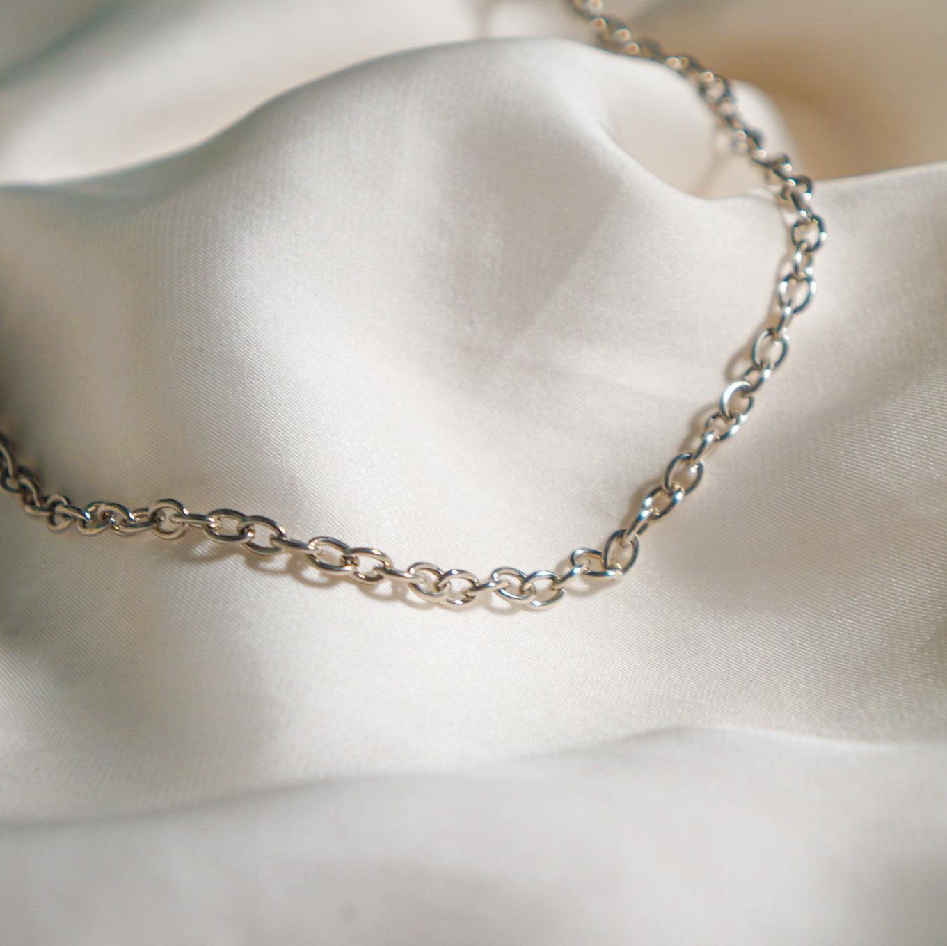 Les maillons ronds en acier inoxydable argenté confèrent à cette chaîne une esthétique intemporelle et sophistiquée. Chaque maillon est soigneusement conçu pour assurer une connexion solide et sécurisée, tout en offrant un mouvement fluide et confortable autour de votre cou.
