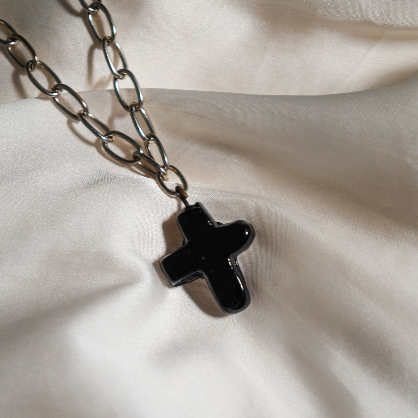 Le pendentif en forme de croix en verre noire apporte une touche d'élégance et de mystère à cette chaîne. La croix noire ajoute une dimension visuelle captivante, créant un contraste frappant avec l'acier inoxydable argenté. Le verre noir apporte une touche de sophistication et de subtilité, tout en étant un symbole intemporel de foi et de spiritualité.
