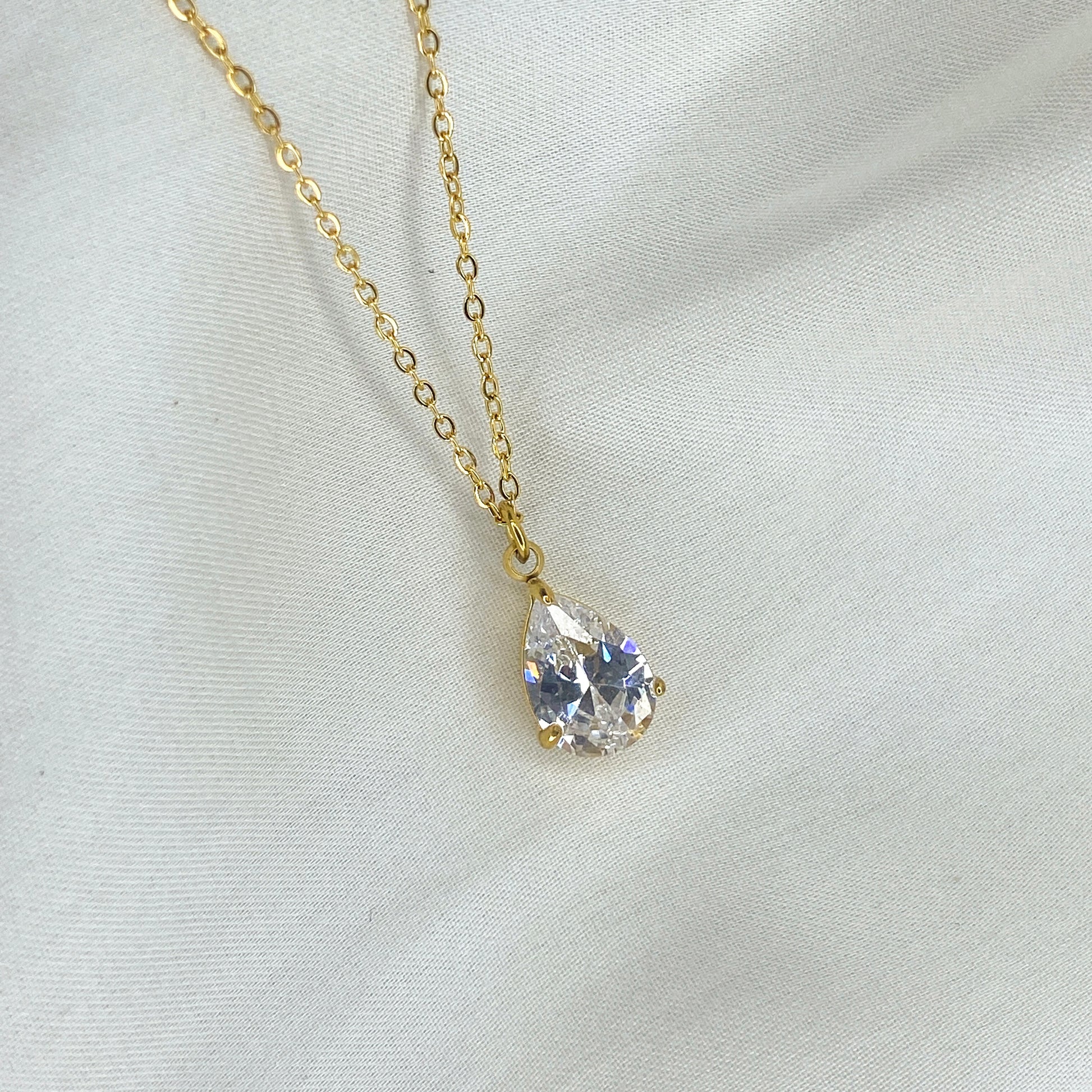 Découvrez la beauté intemporelle du collier Danae. Fabriqué en acier inoxydable de haute qualité, ce bijou est orné d'un élégant pendentif en strass en forme de goutte. Ajoutez une touche de glamour à votre tenue avec ce collier exclusif.