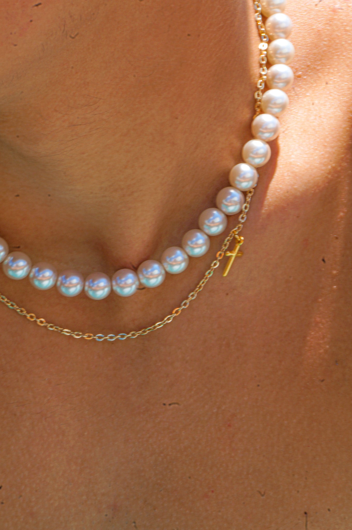 Ce collier est un bijou élégant pour homme composé de perles de culture d'imitation. Ce collier apporte une touche de sophistication classique à votre tenue, avec des perles qui imitent l'apparence des perles de culture naturelles.