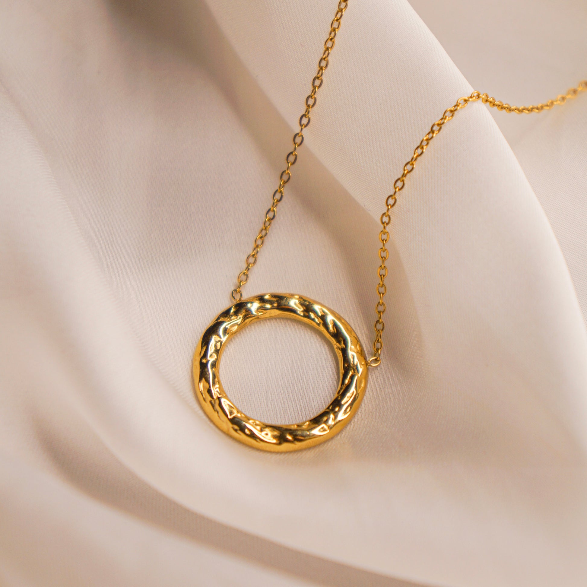 Le Collier Théa est un accessoire élégant en acier inoxydable doré. Le pendentif en forme de rond martelé apporte une touche de sophistication à ce collier, idéal pour toutes les occasions. Son design unique en fait une pièce exclusive pour les amateurs de mode et d'art. Ajoutez une touche de luxe à votre look avec le Collier Théa.