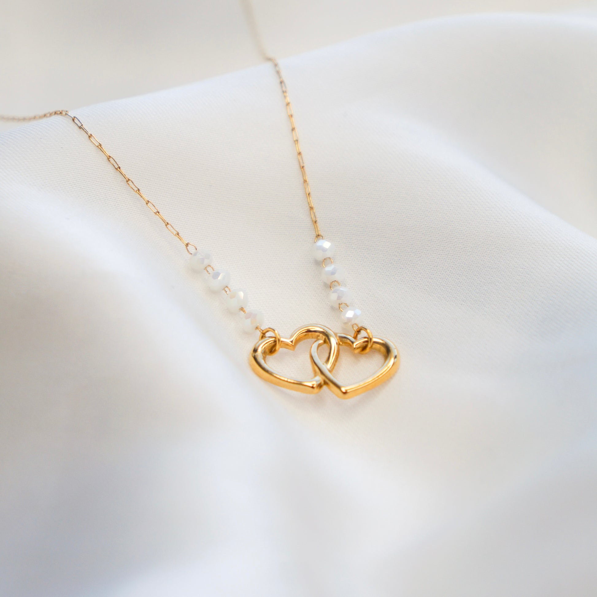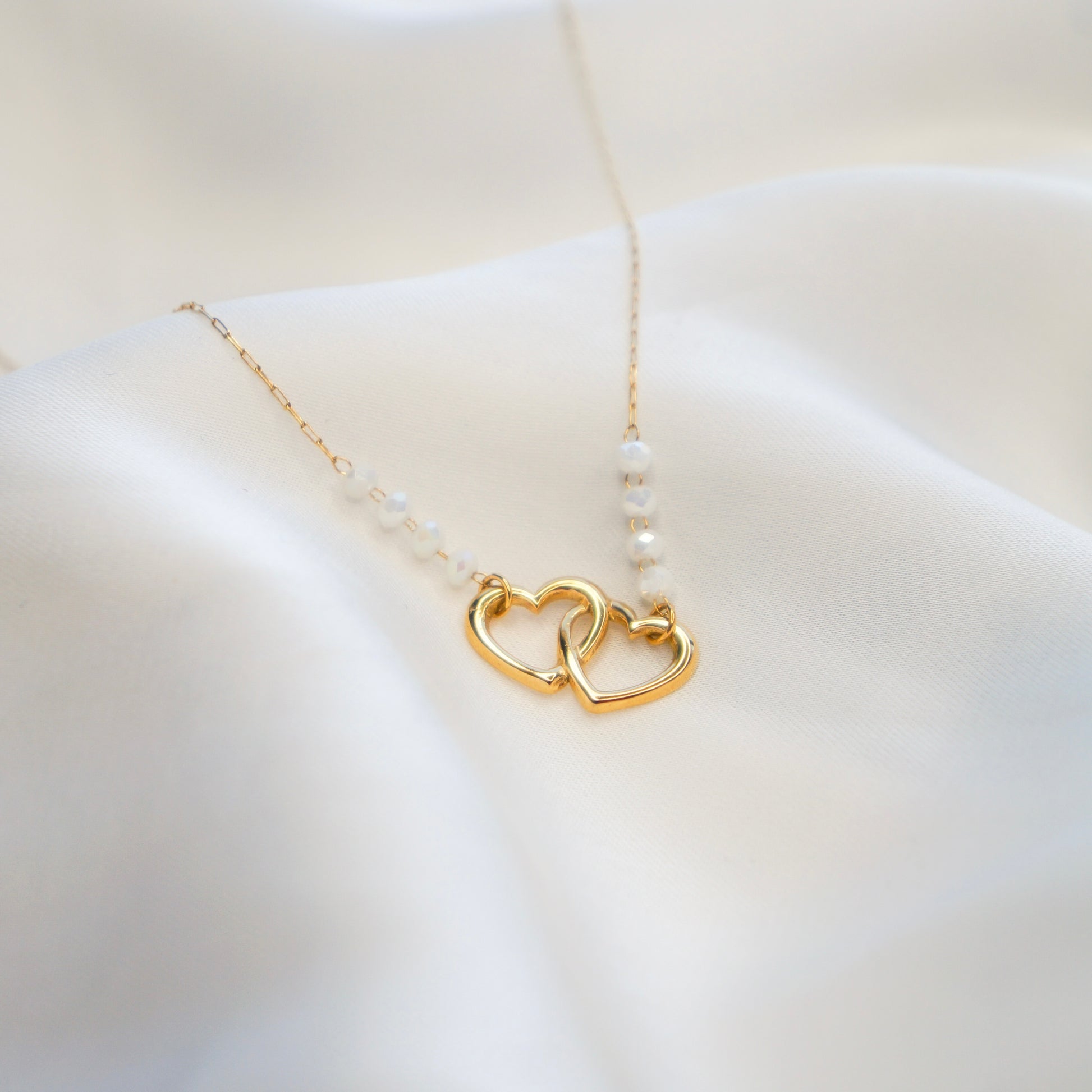 Le Collier Esmé est un bijou intemporel et irrésistible. Chaque chaîne intégrée est ornée d'un cœur entrelacé et de pierres blanches, rehaussant la magnificence de ce collier. Une pièce audacieuse qui est sûre de ravir la porteuse.
