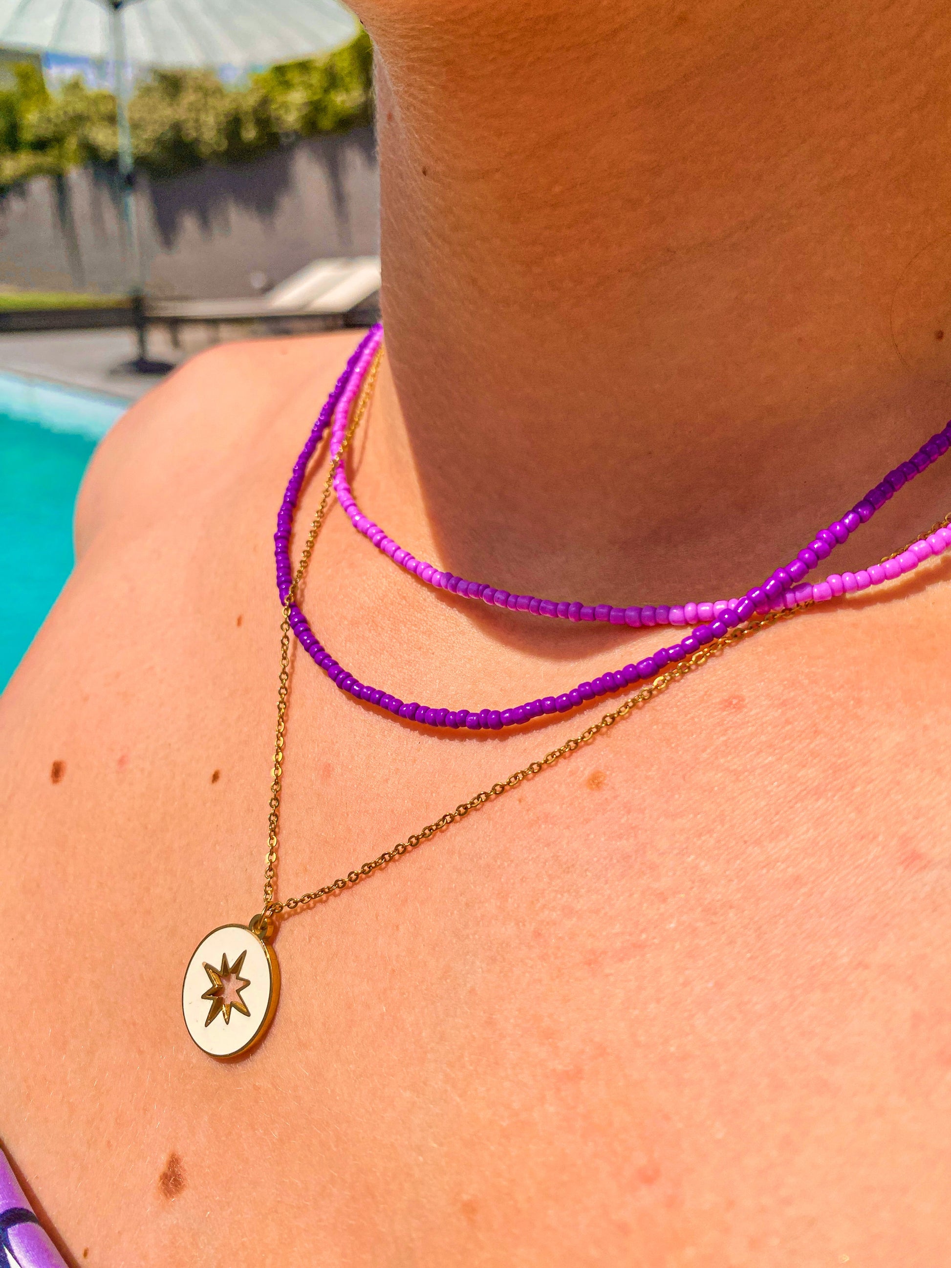 Ce collier est un véritable bijou de l'été ! Avec sa multitude de perles violettes claires, il ne manquera pas de vous faire remarquer et de vous donner un air frais et estival. Les perles sont magnifiquement assorties les unes aux autres pour créer une harmonie parfaite. Ce collier est issu d'une collection axée sur la protection de l'environnement et la durabilité en encourageant la récupération de bijoux avec de petites imperfections remis à neuf plutôt que de céder à la fast fashion. Portez-le avec fierté, sachant que vous contribuez à la préservation de la planète tout en étant à la pointe de la mode.