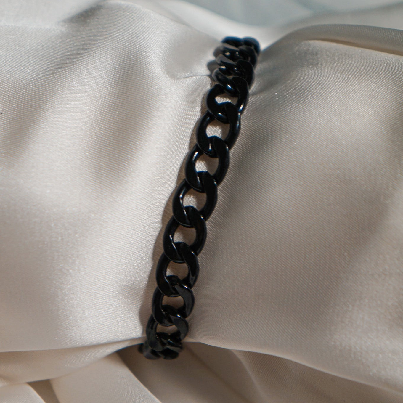 Fabriquée en acier brillant léger noir, cette gourmette offre une finition étincelante qui attire l'attention. L'acier brillant donne à la gourmette un aspect poli et raffiné, créant ainsi un contraste visuel saisissant avec les grosses mailles. Cela confère à la gourmette un éclat subtil qui mettra en valeur votre poignet avec élégance.