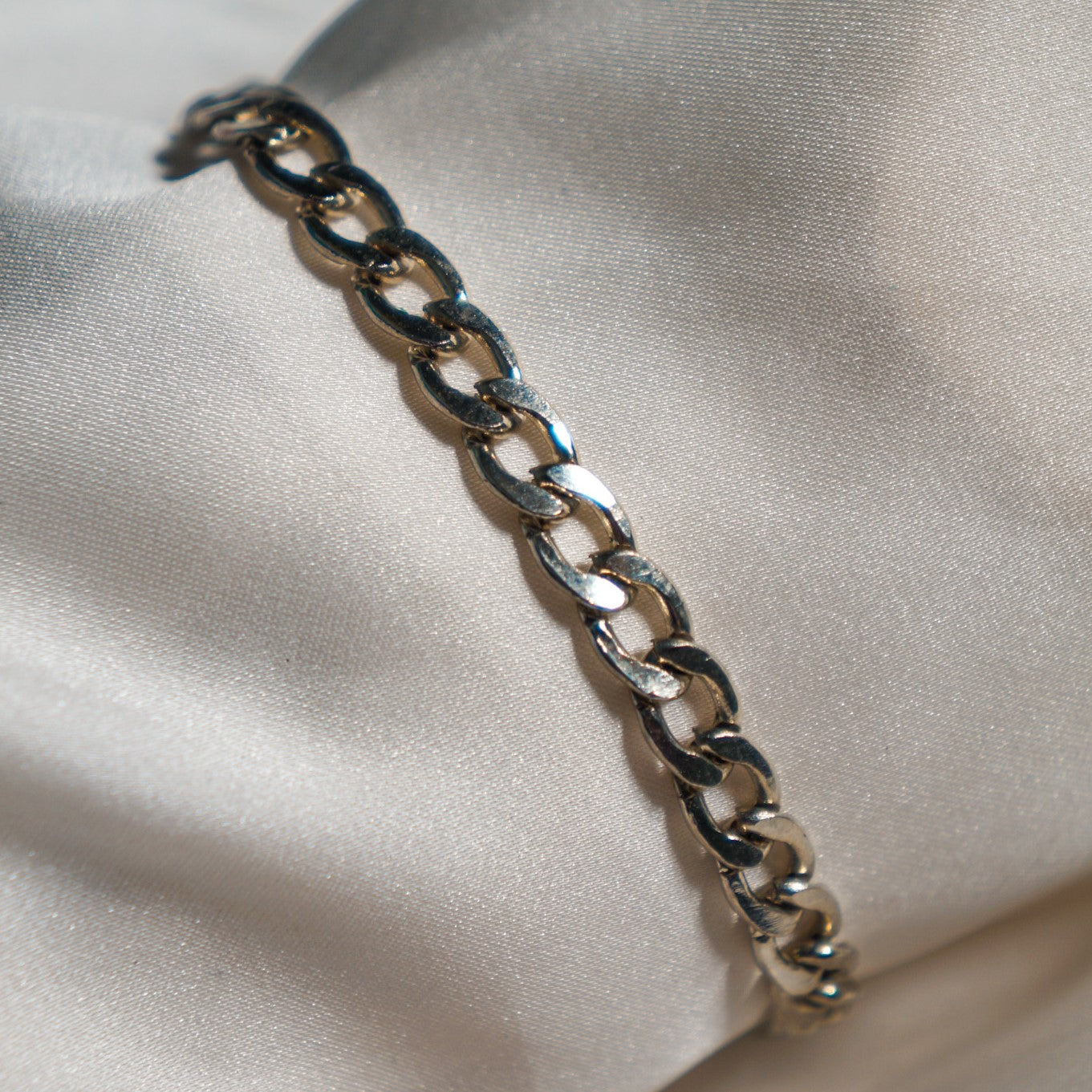 Cette gourmette pour homme que je vais décrire est un bijou robuste en acier inoxydable argenté, avec une maille simple. Cette gourmette allie force et style, ajoutant une touche masculine et audacieuse à votre poignet.