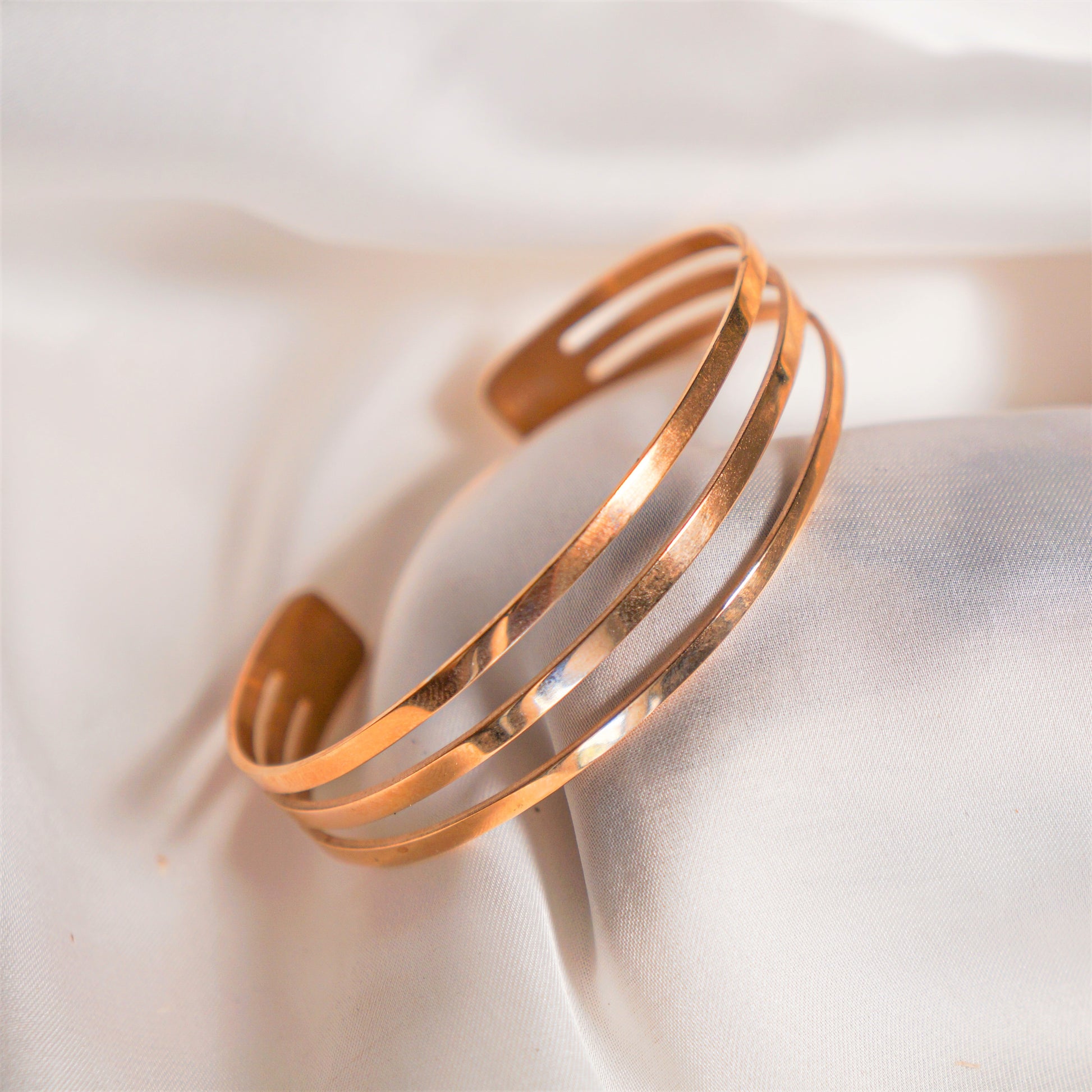 Le jonc en bracelet inoxydable réglable avec 3 rangs cuivré est un bracelet élégant et pratique. Le bracelet est en acier inoxydable, ce qui le rend hypoallergénique, résistant à l'eau et ne noircit pas. Le bracelet est réglable pour s'adapter à différentes tailles de poignet. Le bracelet est facile à porter seul ou à accumuler avec d'autres bracelets. En somme, le jonc en bracelet inoxydable réglable avec 3 rangs cuivré est un choix parfait pour les personnes qui cherchent une alternative abordable et élégante aux bracelets dorés classiques.