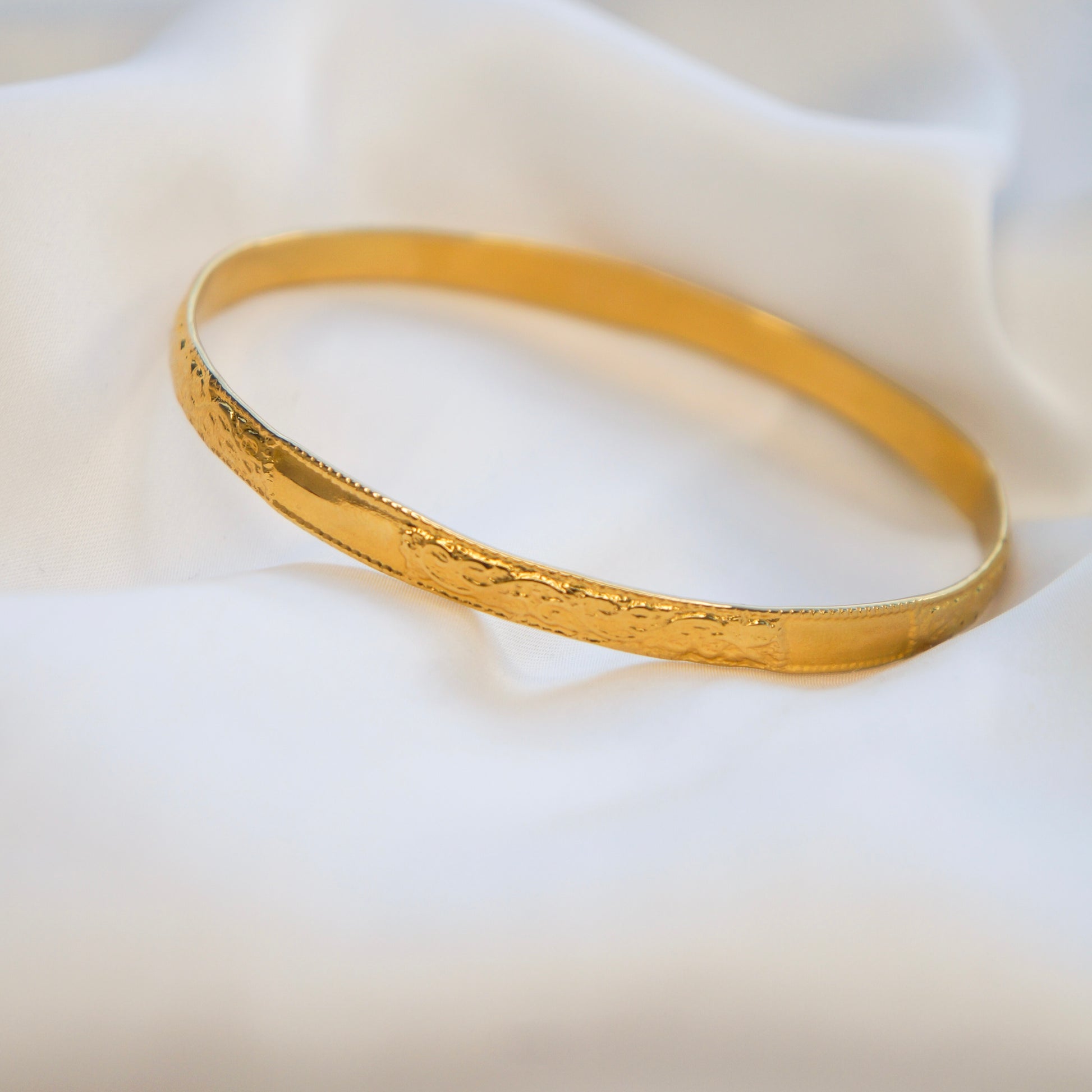 "Le Jonc Margaux est un bijou élégant conçu pour la femme sophistiquée. Fabriqué en acier inoxydable doré, ce jonc fin comprend un potin gravé pour une touche artistique et exclusive. Ajoutez une touche de luxe à votre tenue avec le Jonc Margaux."