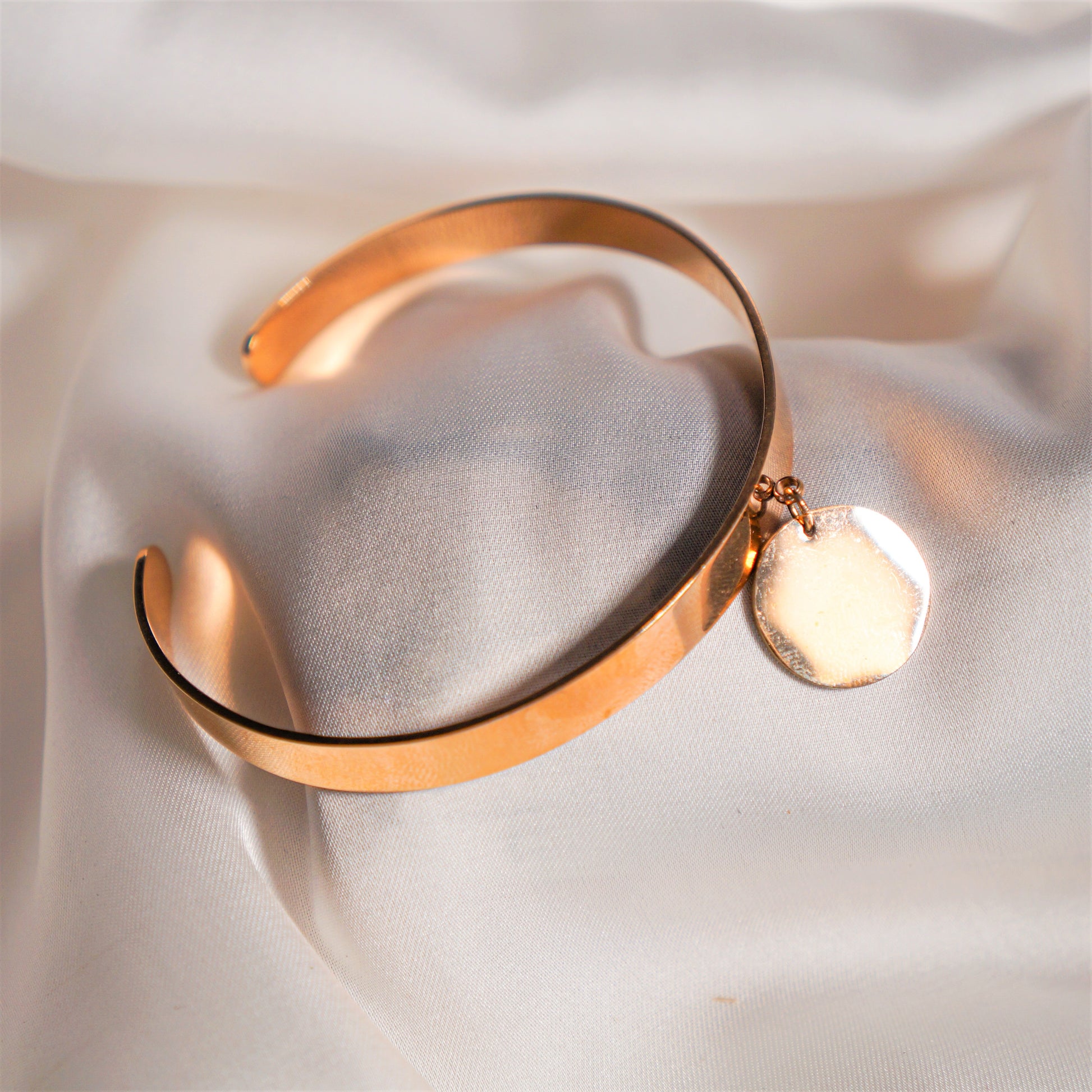 Ce jonc réglable en acier inoxydable cuivré avec une pampille mobile ronde est un bijou à la fois élégant et pratique. Fabriqué à partir d'un acier inoxydable de haute qualité, le bracelet est résistant à la corrosion et à l'usure, assurant ainsi sa durabilité.