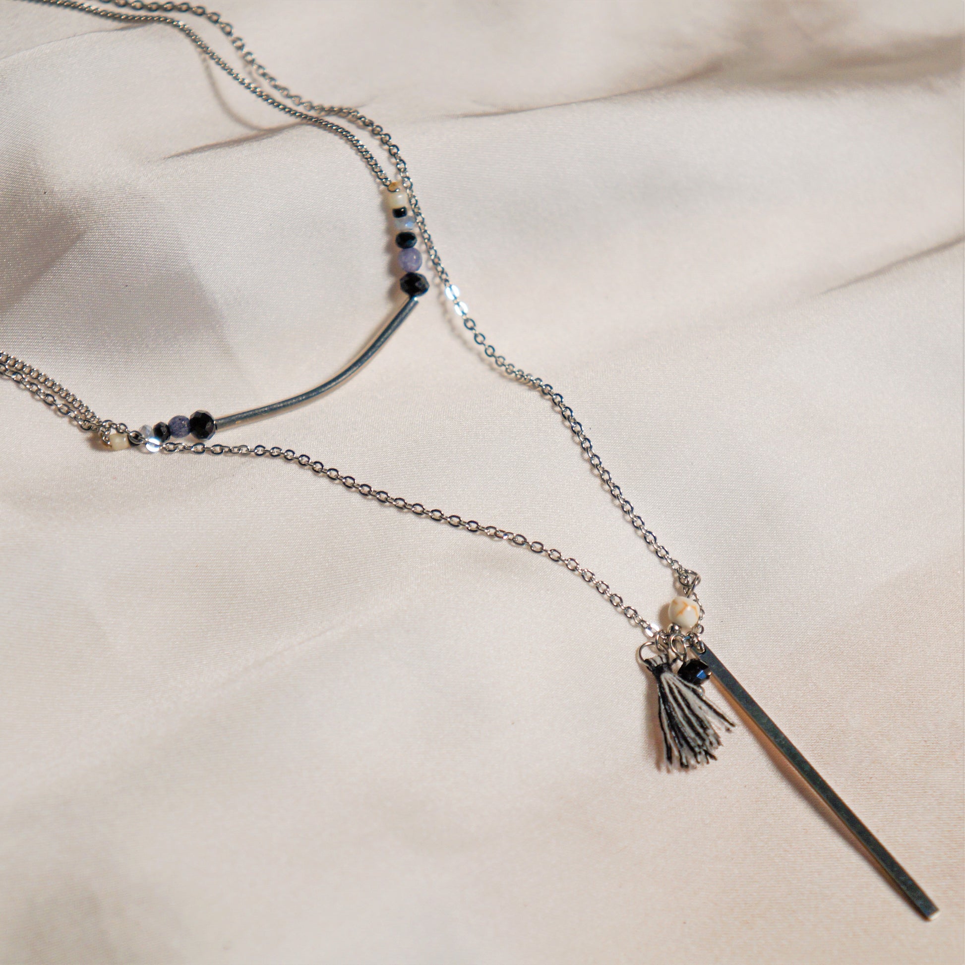 Ce sautoir en acier inoxydable argenté à double rangs avec des multiples pampilles est un bijou magnifique et original qui ajoute une touche de sophistication et d'élégance à n'importe quelle tenue. Les deux rangées de la chaîne sont en acier inoxydable de qualité supérieure, ce qui offre une excellente résistance à l'usure et une longue durée de vie. La finition argentée brillante de la chaîne ajoute une touche de modernité et de sophistication.